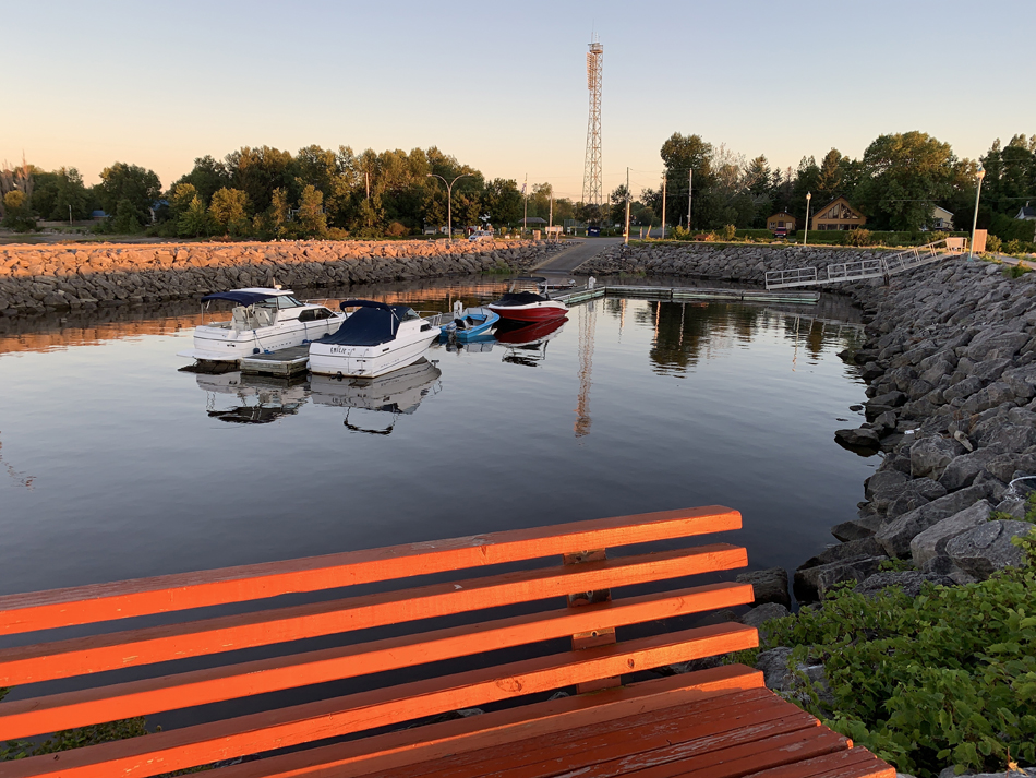 Deschambault-Grondines, fleuve Saint-Laurent, lever du soleil du havre pour les embarcations de plaisance
