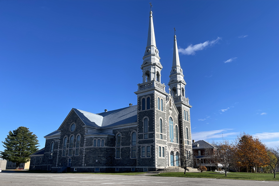 Curé-Adélard-Lamy, flèches des clochers de l’église catholique, le village, 14:18 le