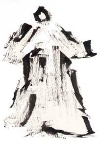 Carte de souhaits, papier byronic, 14 x 17 cm, texture, aquarelle, encre de Chine, 1991, photo 014Carte199104.