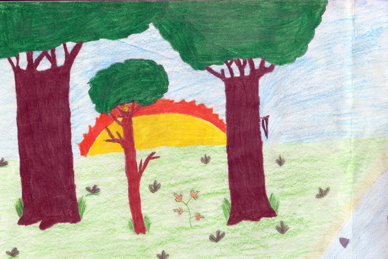 Mon dessin représente la plantation de la nature et les animaux qui y vivent en paix.