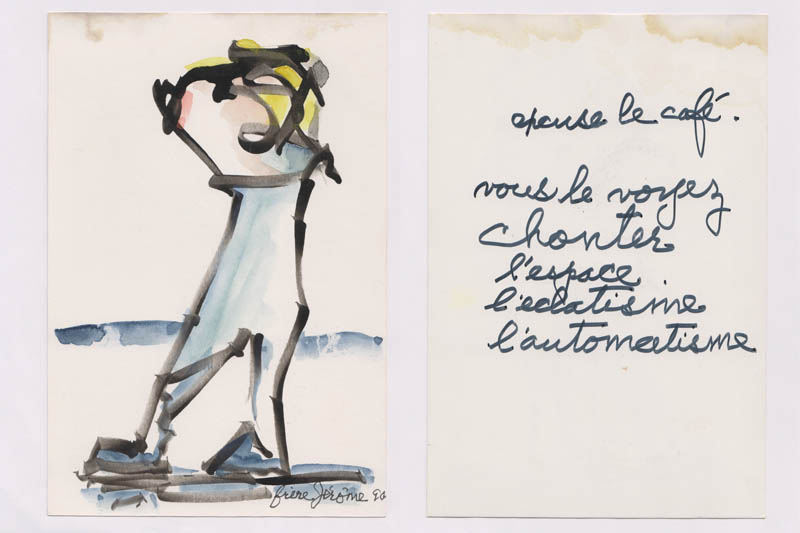 Plein de gazoline, (dessin) frère Jérôme 1991, carton glacé 17,5 x 13 centimètres, numérisation 1991_09_13_dessin_peindre_dos_800.